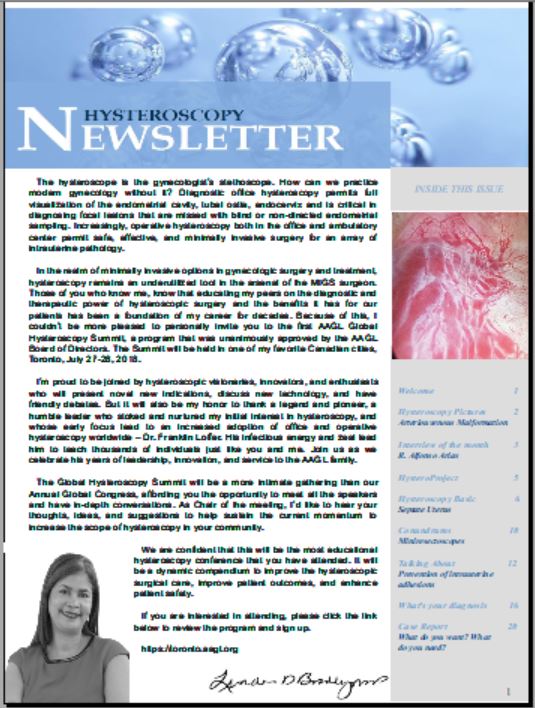 The Hysteroscopy Newsletter Blog is a new tool created to support all the hysteroscopists around the world, with the aim to facilitate an open communication and sharing of new ideas, details about procedures and innovation between all providers who are passionate for Hysteroscopy