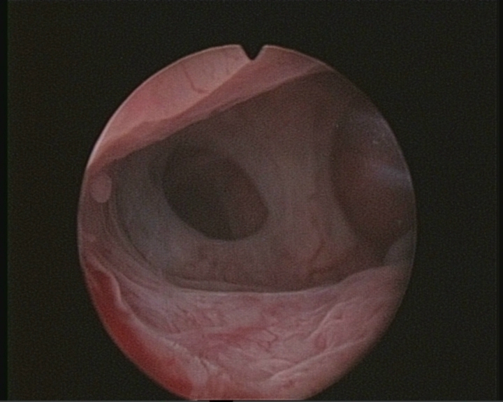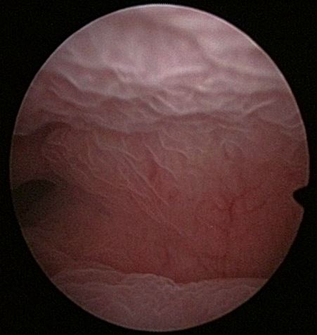 The uterine cavity is a virtual cavity that needs to be relaxed for proper hysteroscopic evaluation. Distension of the uterine cavity is directly related to the intracavitary pressure of the distension media used and the presence of factors that alter the normal myometrial distention capacity, such as presence of fibroids or multiparity.