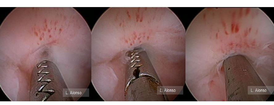 2. For difficult cases such as Asherman syndrome or large type II submucosal myomas, combined synchronous laparoscopic control or ultrasound guidance may be considered to decrease the risk of perforation and visceral injury.