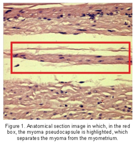 Furthermore, from the anatomical point of view, uterine fibroid is structurally anchored to its pseudocapsule by connective bridges, but it lacks its own true vascular pedicle and, occasionally, bridges of vessels and collagen fibers anchoring myoma to myometrium, interrupting the pseudocapsule surface.